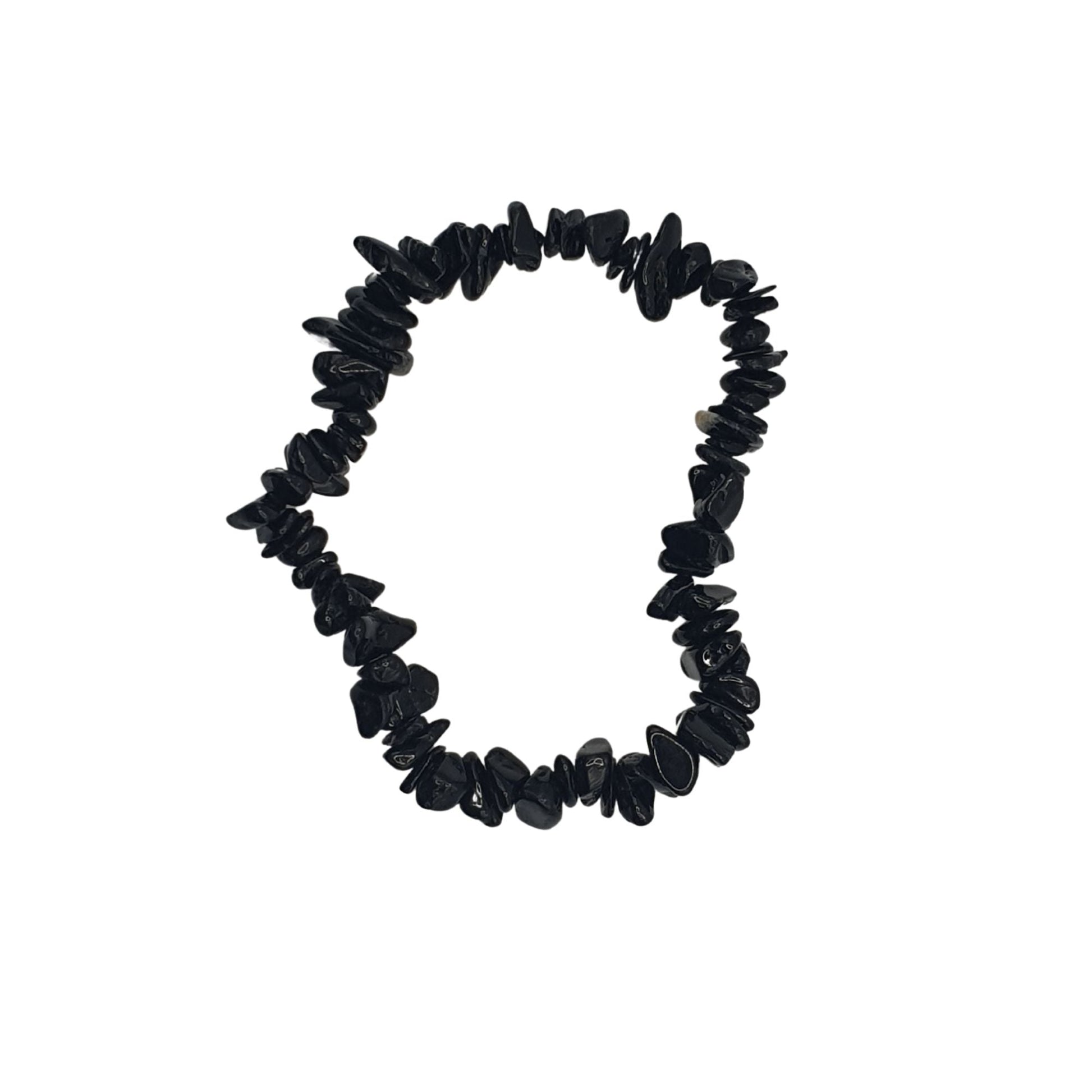 Elasticated bracelet with black tourmaline chips approximately 0.6cm x 0.1cm